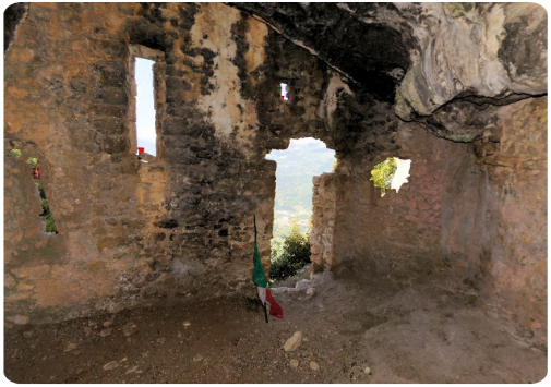 La grotta è illuminata da una grossa feritoia svasata verso l'interno. Questo tipo di apertura si trova in genere nei castelli o nelle torri e serviva a colpire gli assalitori mantenendosi al riparo. Forse questo particolare ci può aiutare a capire l'uso di questa costruzione.